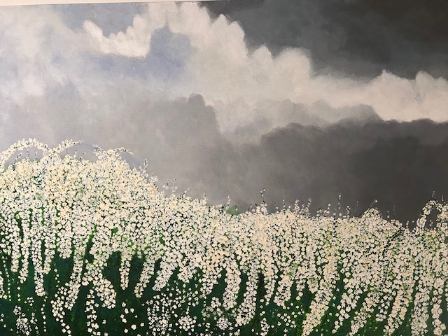 Grues, 2022, acrylique & feutres 1,20 x 1,60 m.